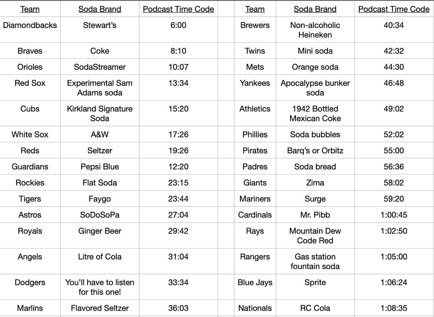 I would call this podcast the companion piece to Nick’s article above. As with every week from the On The Corner Podcast, Alex Fast goes through Nick's top 100 SP rankings with this episode focused more on rest of season SP planning. Nick comes up with a creative way to label each team’s rotation by soda brand, and Alex adds some of his own commentary to those brand labels as well. Fun episode and some good laughs. I have marked the time code for each team rotation Nick and Alex discussed along with their soda brands below. Enjoy!
