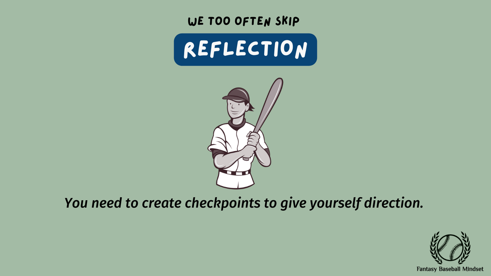 When you don’t take the time to reflect, it can make seeing the path forward more difficult. This results in making incorrect team management decisions due to a lack of direction as well as just giving up too soon. Having a process of reflection actually helps create the consistency needed to continue grinding a long fantasy baseball season.